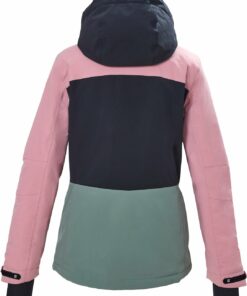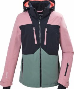 Die Damen Skijacke von killtec ist mit ihrem Colourblock Design ein echter Hingucker auf der Piste. Sie ist durch den wasserdichten Reißverschluss und die verschweißten Nähte wind- und wasserdicht mit einer Wassersäule von 10.000 mm. Gleichzeitig sie atmungsaktiv mit einer Wasserdampfdurchlässigkeit von 3.000 g/m²/24 h. Der in der Weite regulierbare Schneefang verfügt über eine rutschfeste Gummierung. Die Ärmelabschlüsse, der Saum und die Kapuze lassen sich verstellen. Elastische Bündchen mit Daumenlöchern am Ärmelsaum verhindern das Eindringen von Kälte und Wind. Zahlreiche Taschen bieten genügend Stauraum für Skipass, Skibrille, Handy und Co. Die Jacke ist mit der leistungsstarken, regenerativen Ausru?stung Teflon EcoElite? imprägniert. Dieses Textilrepellent ist pflanzen- und biobasiert und hat eine nicht fluorierte Fleckschutztechnologie, die Wasser- und wasserbasierte Flecken abweist.