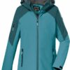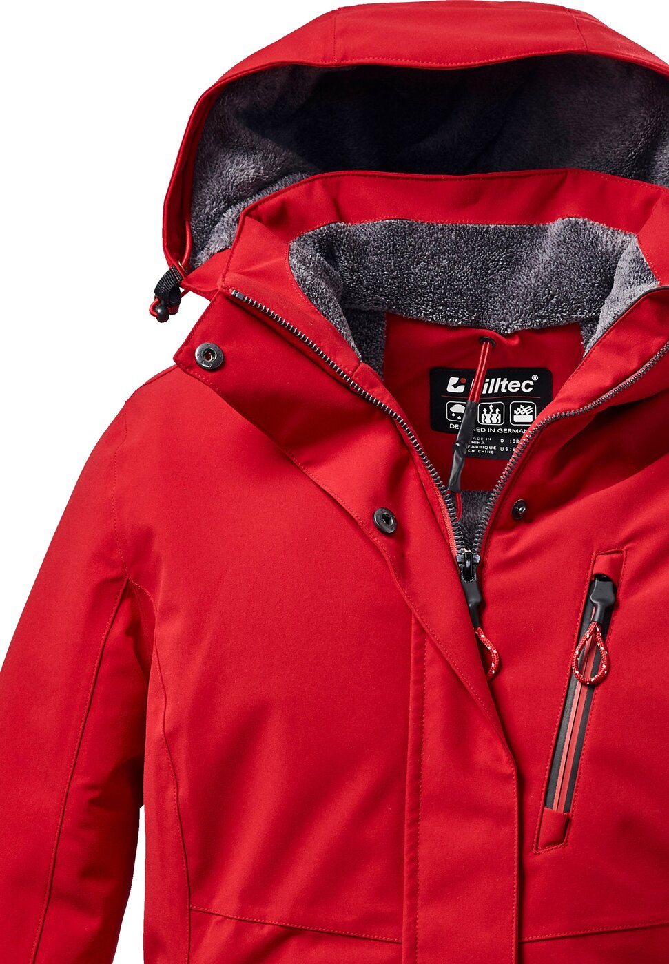 Die Damen Funktionsjacke von killtec besticht durch zeitloses Design und zuverlässige Funktionalität. Mit einer 10.000 mm Wassersäule und den verschweißten Nähten ist die Jacke wasser- und winddicht (Unser Tipp: Ab und zu sollte die Jacke neu imprägniert werden). Zusätzlich ist sie atmungsaktiv mit einer Wasserdampfdurchlässigkeit von 3.000 g/m²/24 h. Die Kapuze ist individuell weitenregulierbar und kann bei Bedarf abgenommen werden. Die Ärmelbündchen sind durch Klettverschlüsse verstellbar. Kapuze und Kragen sind mit kuschligem Teddy Fleece gefüttert und schützen bei widrigem Wetter. Zahlreiche Taschen bieten genügend Stauraum für Handy, Schlüssel und andere wichtige Dinge. Der verdeckte Reißverschluss ist mit einem praktischen Kinnschutz ausgestattet. killtec liegt es besonders am Herzen, die Kollektionen nachhaltiger und zukunftsfähiger zu machen. So setzt killtec verstärkt auf verantwortungsbewusstere Herstellungsverfahren. Diese Jacke wurde daher mit fluorfreien Mitteln imprägniert.