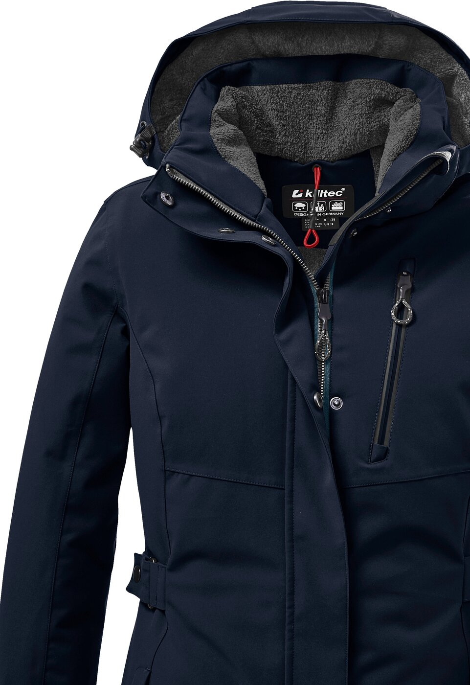 Der Damen Funktionsparka von killtec besticht durch sein zeitloses Design und funktionale Eigenschaften. Er ist durch verschweißte Nähte und mit einer 10.000 mm Wassersäule wasser- und winddicht und dabei auch atmungsaktiv. Die regulierbare Kapuze lässt sich bei Bedarf abzippen. Das weiche Teddyfleece spendet angenehme Wärme und ist besonders kuschelig. Der Parka punktet außerdem durch praktische Features wie die seitliche Taillenregulierung, verstellbare Ärmelbündchen sowie einen 2-Wege-Reißverschluss mit Kinnschutz. Die seitlichen Eingrifftaschen und die Brusttasche sind mit Zippern verschließbar, sodass nicht verloren geht. Innen findet sich zusätzlich eine praktische Handytasche. killtec liegt es besonders am Herzen, die Kollektionen nachhaltiger und zukunftsfähiger zu machen. So setzt killtec verstärkt auf verantwortungsbewusstere Herstellungsverfahren. Dieser Parka wurde daher mit fluorfreien Mitteln imprägniert.