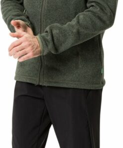 Diese Fleecejacke für Herren in modischer Strickoptik ist der ideale Begleiter, wenn die Temperaturen wieder in den Keller gehen. Das umweltfreundliche Fleece-Material, das zu 100 % aus recycelten PET-Flaschen hergestellt wurde, hält auch bei schweißtreibenden Aktivitäten warm und trocken. Dabei fühlt sich das Fleece angenehm an und ist sehr strapazierfähig. Die Fleecejacke für Herren engt nicht ein und kann als wärmende Schicht unter der Regen- oder Winterjacke getragen werden, reicht bei einer Wanderung im Herbst aber auch allein aus. Die flachen Nähte im Schulterbereich der Rienza Jacket III sorgen für einen hohen Tragekomfort, auch wenn ein Rucksack auf den Schultern sitzt. In den beiden seitlichen Reißverschlusstaschen der Herren Fleecejacke werden kalte Hände wieder warm, bieten aber auch Platz für Kleinigkeiten. Der Kordelzug im Saum ist durch die Taschen regulierbar, elastische Ärmelbündchen sorgen für optimalen Sitz. Das VAUDE Green Shape-Label steht für ein umweltfreundliches, funktionelles Produkt aus nachhaltigen und bluesign® zertifizierten Materialien. Als Mitglied mit Leader Status bei der unabhängigen Organisation Fair Wear engagiert sich VAUDE für faire Arbeitsbedingungen und faire Löhne.