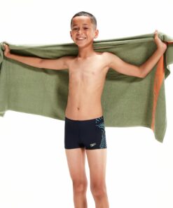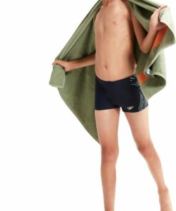 Speedo Essentials ? alles, was Ihr Kind für ein tolles Bad braucht. Mit einer blauen und grünen “Cresting Wave” -Plastisolgrafik ist diese schlank aussehende marineblaue Aquashort stilvoll und dezent. Ideal für Training, Unterricht und Spaß im Pool, ist sie an der Vorderseite für Komfort und Bescheidenheit gefüttert und verfügt über einen internen Kordelzug, damit junge Schwimmer die Passform anpassen können. Mit einer höheren Chlorbeständigkeit als herkömmliche Badebekleidungsstoffe bietet die Aquashort eine hervorragende Formbeständigkeit und passt länger wie neu mit CREORA® HighClo?. Wenn Sie nach großartigen Öko-Referenzen suchen, gibt es auch diese: Unser exklusives Eco EnduraFlex-Gewebe besteht zu 100% aus recycelten Pre-Consumer-Abfällen, wie z. B. Stoffabfällen aus Fabriken.