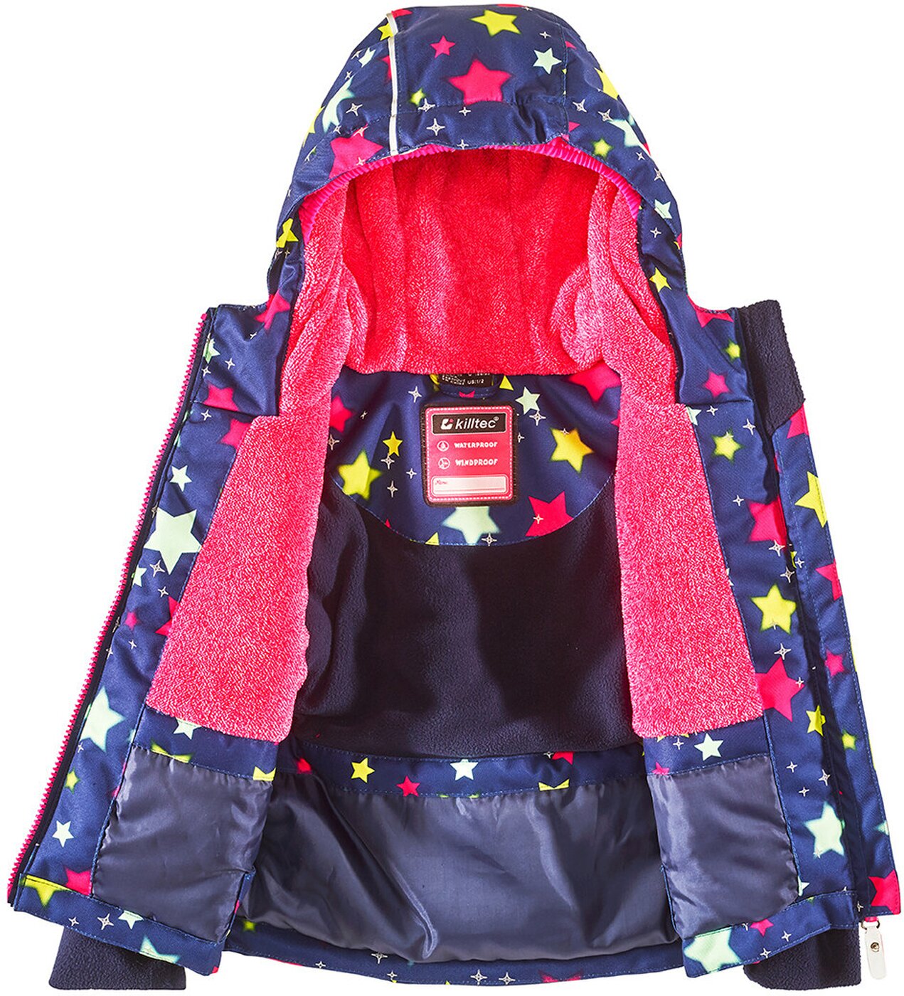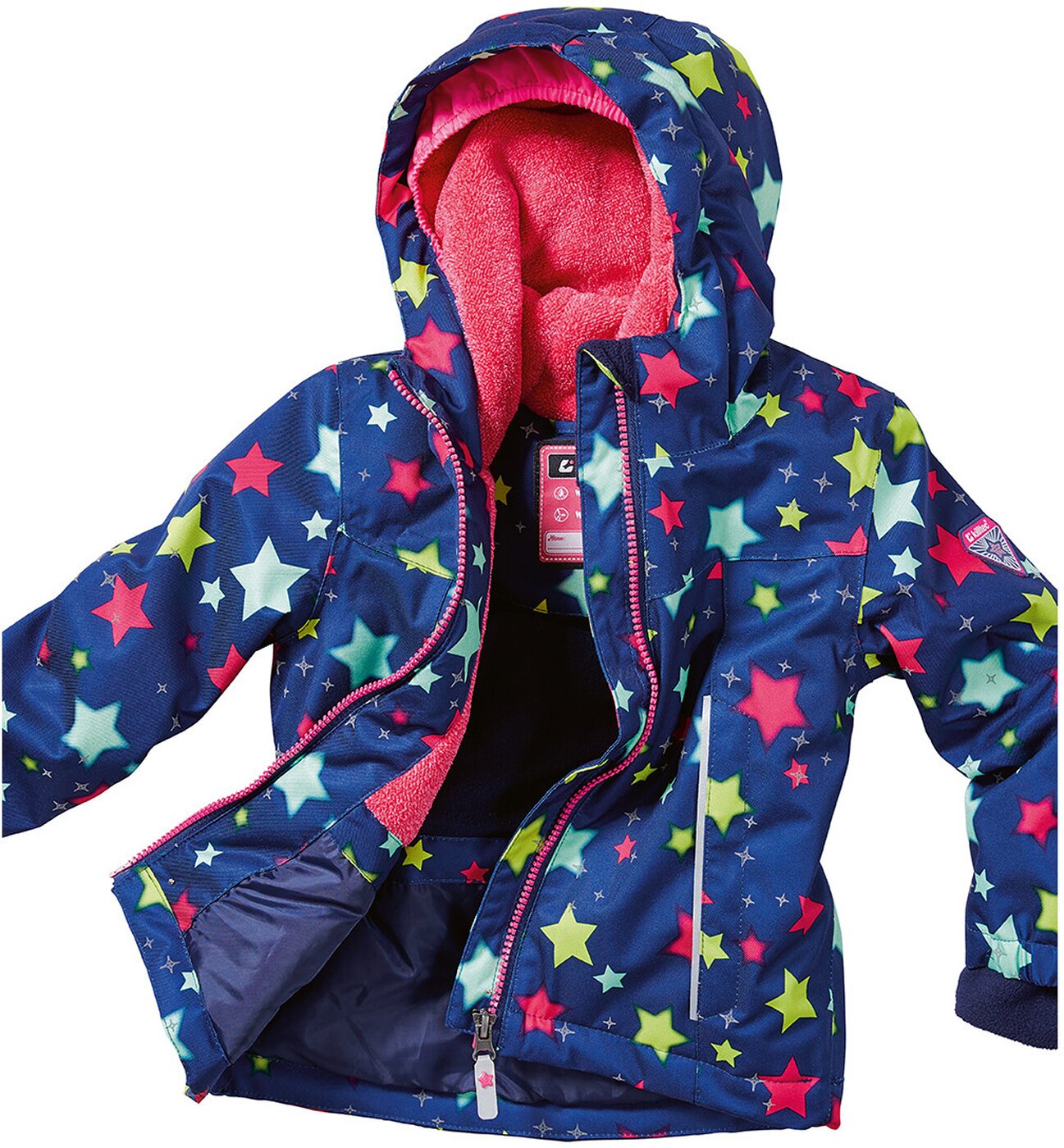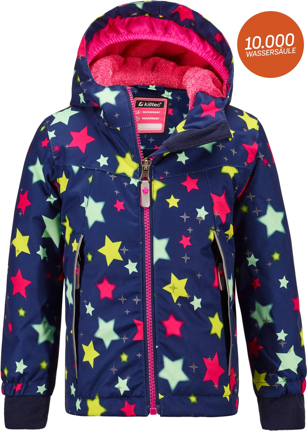 Die Funktionsjacke ist der perfekte Begleiter durch alle Alltagsabenteuer und überzeugt mit einer 10.000 mm Wassersäule und verschweißten Nähten, wodurch die Jacke wasserdicht ist. Das PU-Laminat sorgt außerdem dafür, dass sie winddicht und somit auch bei Wind und Wetter einsatzbereit ist. Zudem hält das kuschelige Fleece innen schön warm und sorgt für einen optimalen Tragekomfort. Weitere Highlights sind die modisch reflektierenden Elemente sowie die seitlichen Eingrifftaschen mit Reißverschluss. Mit dem praktischen, eingenähten Namensetikett zum Beschriften geht die Jacke in der Kita oder Schule nicht so leicht verloren.