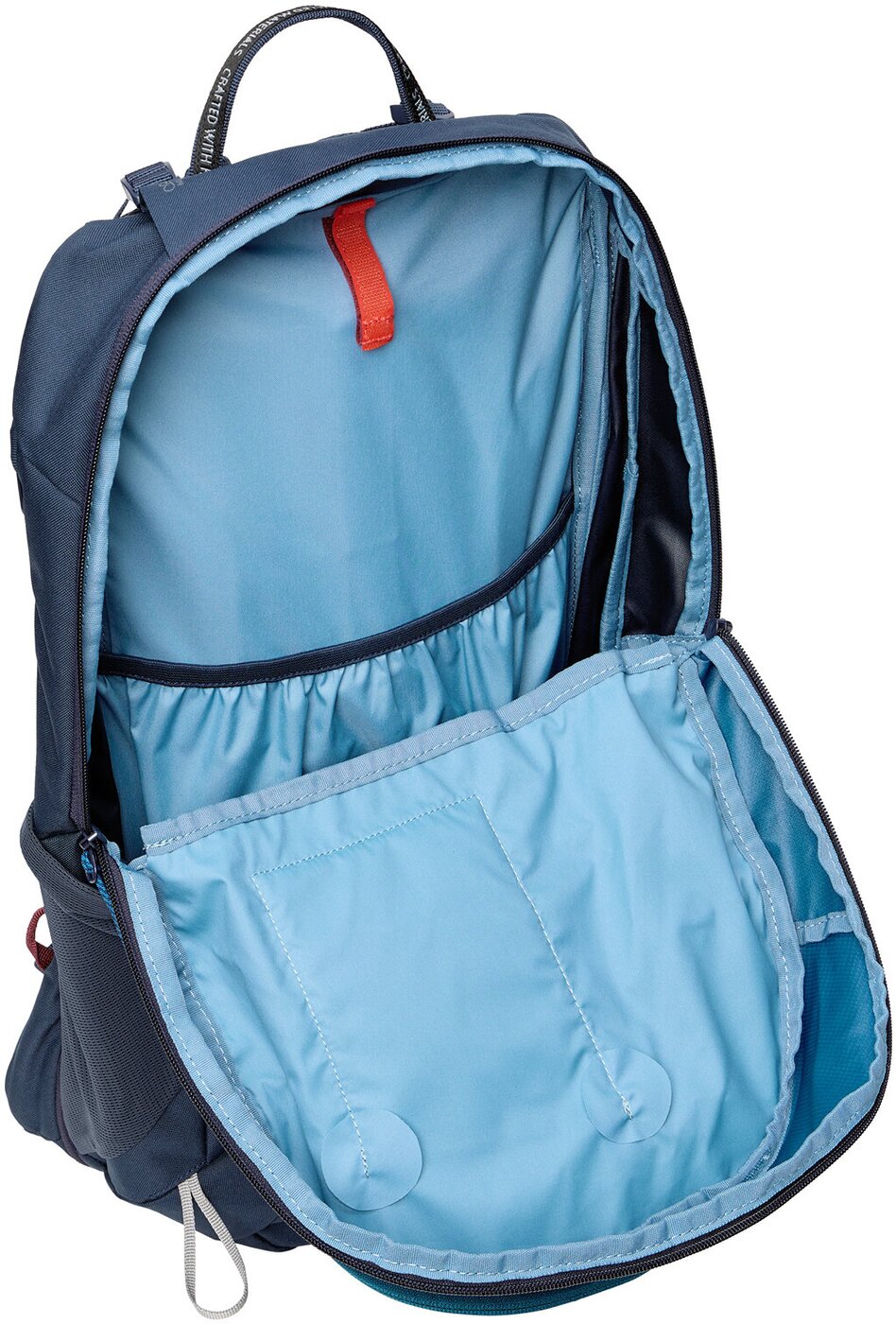 | Material | Hauptstoff – Material: 100% Polyamid (recycelt), Beschichtung: 100% Polyurethan, Second fabric – Aussenseite: 100% Polyester (recycelt), Beschichtung: 100% Polyurethan, Futter 1 – Außenseite: 100% Polyester (recycelt), Beschichtung: 100% Polyurethan, Futter 2 – Aussenseite: 100% Polyamid, Beschichtung: 100% Polyurethan, Regenhülle – Aussenseite: 100% Polyamid (recycelt), Beschichtung: 100% Polyurethan |